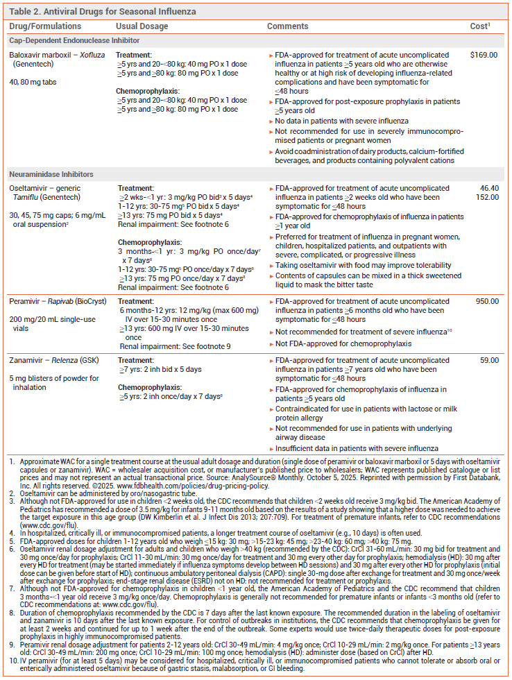 Antiviral Drugs for Seasonal Influenza for 2025-2026